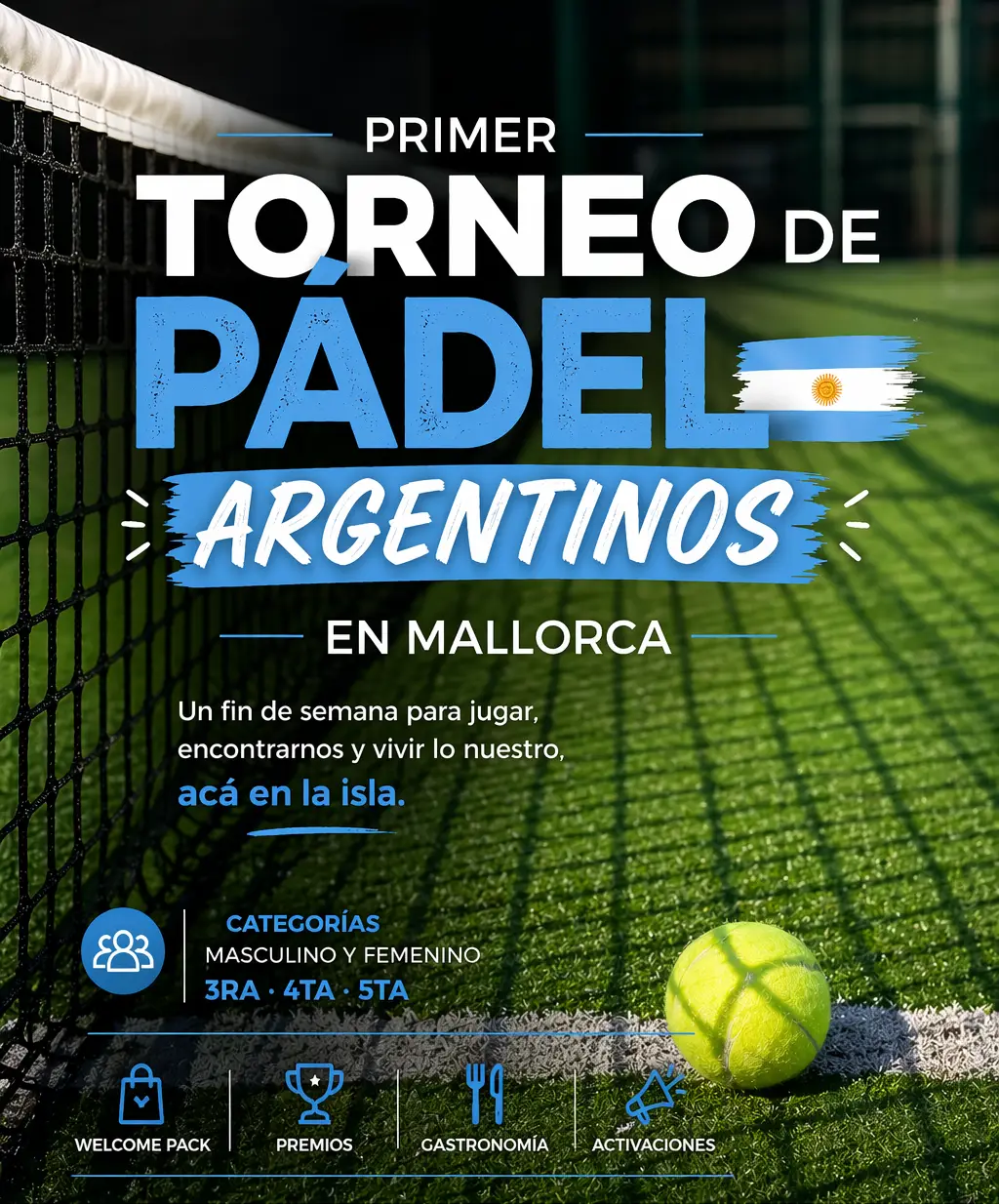 torneo de padel Argentinos en Mallorca Se viene el primer Toneo de Padel «Argentinos en Mallorca». ¿Querés ser de los primeros en enterarte? Dejá tu correo y te mandamos toda la info antes que a nadie. Por favor, activa JavaScript en tu navegador para completar este formulario.Por favor, activa JavaScript en tu navegador para completar este formulario. verificación Nombre electrónico Nombre *NombreApellidosCasillas de verificaciónMasculino 5ªFemenino 5ªMasculino 4ªFemenino 4ªMasculino 3ªFemenino 3ªCorreo electrónico *Enviar Por admin|2026-04-24T16:26:24+00:00abril 24, 2026|Eventos|Sin comentarios Comparta esta información en su red Social favorita! FacebookXRedditLinkedInWhatsAppTelegramPinterestCorreo electrónico Sobre el Autor: admin Artículos relacionados Gustavo Cordera en Mallorca Galería Gustavo Cordera en Mallorca Tertawa: Delivery de humor Galería Tertawa: Delivery de humor Mike Chouhy en Mallorca Galería Mike Chouhy en Mallorca CECI HACE Y NAHUEL | TE PIDO MIL DISCULPAS Galería CECI HACE Y NAHUEL | TE PIDO MIL DISCULPAS Deja tu comentario Cancelar la respuestaComentar Guardar mi nombre, email y sitio web en este navegador para la próxima vez que comente. Are you human? Please solve: